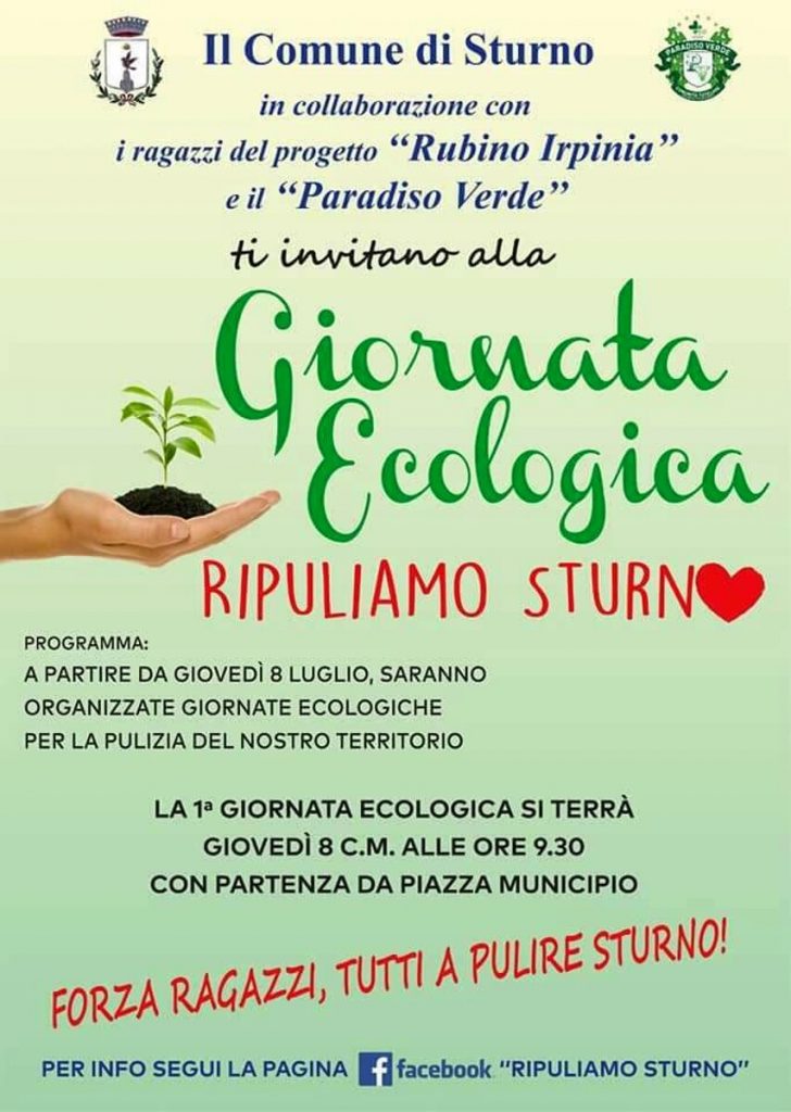 E’ partito oggi, il programma “Ripuliamo Sturno”, promosso dall’amministrazione , in collaborazione con il “Paradiso Verde”, i ragazzi del Servizio Civile impegnati nel progetto “Rubino Irpinia, i dipendenti comunali e tanti ragazzi e ragazze sensibili al tema dell’ambiente.