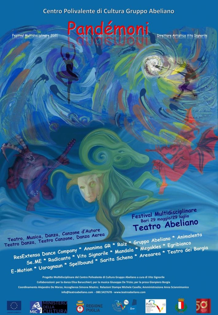 Riparte con ‘Pandémoni’ il Nuovo Teatro Abeliano di Bari, un “festival multidisciplinare” a cura di Vito Signorile “per tornare a emozioni antiche e nuove, a esperienze spettacolari, sorprendenti e vivificanti”. ‘Pandémoni’, in programma da sabato 29 maggio fino domenica 25 luglio, comprende 18 spettacoli per 24 giorni di programmazione.