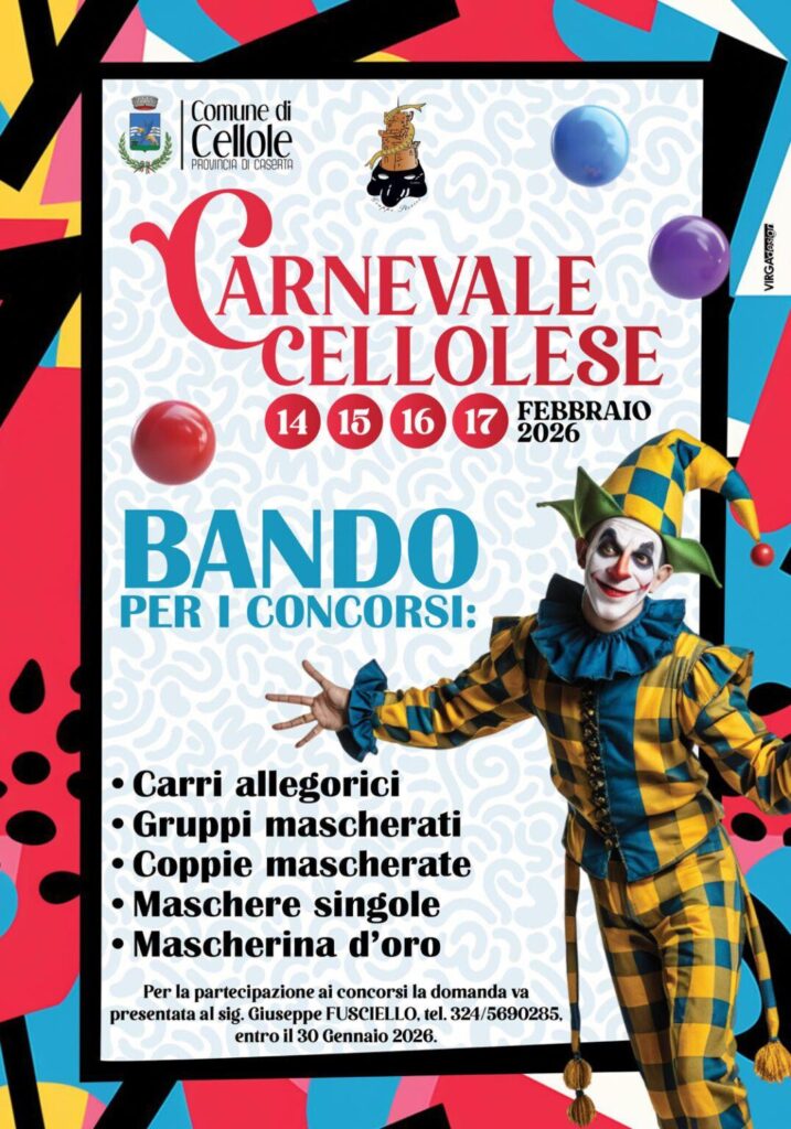 Cellole si prepara a vestirsi di colori, musica e sorrisi: dal 14 al 17 febbraio 2026 torna il Carnevale Cellolese, uno degli appuntamenti più attesi dell’anno, capace di richiamare famiglie, giovani e visitatori da tutta la provincia di Caserta. Un evento che unisce tradizione e creatività, trasformando le strade del paese in un grande palcoscenico a cielo aperto.