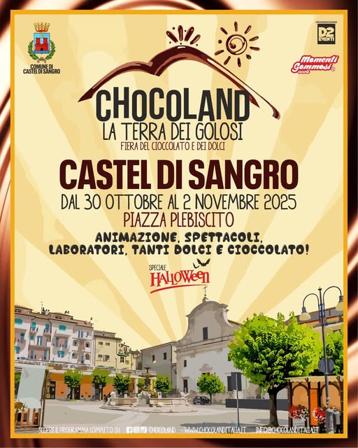 La manifestazione, come da tradizione, abbraccia anche l’atmosfera giocosa di Halloween: spettacoli, laboratori per bambini, musica dal vivo e performance itineranti animeranno la collina per cinque giorni. Ma non saranno solo i più piccoli a divertirsi — il programma è pensato per coinvolgere tutte le età, con appuntamenti dedicati anche agli adulti amanti del buon cioccolato e delle curiosità gastronomiche.