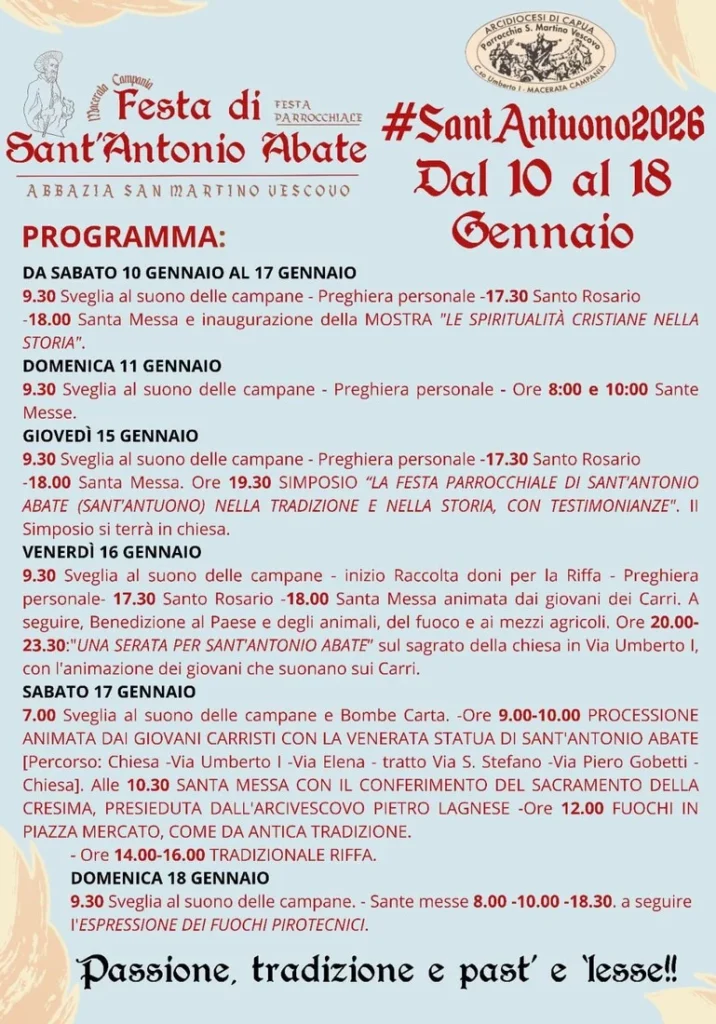 La Festa di Sant’Antuono non è solo un evento, ma un’esperienza che unisce spiritualità, comunità e tradizione popolare, rendendo Macerata Campania un punto di riferimento imprescindibile del gennaio campano.