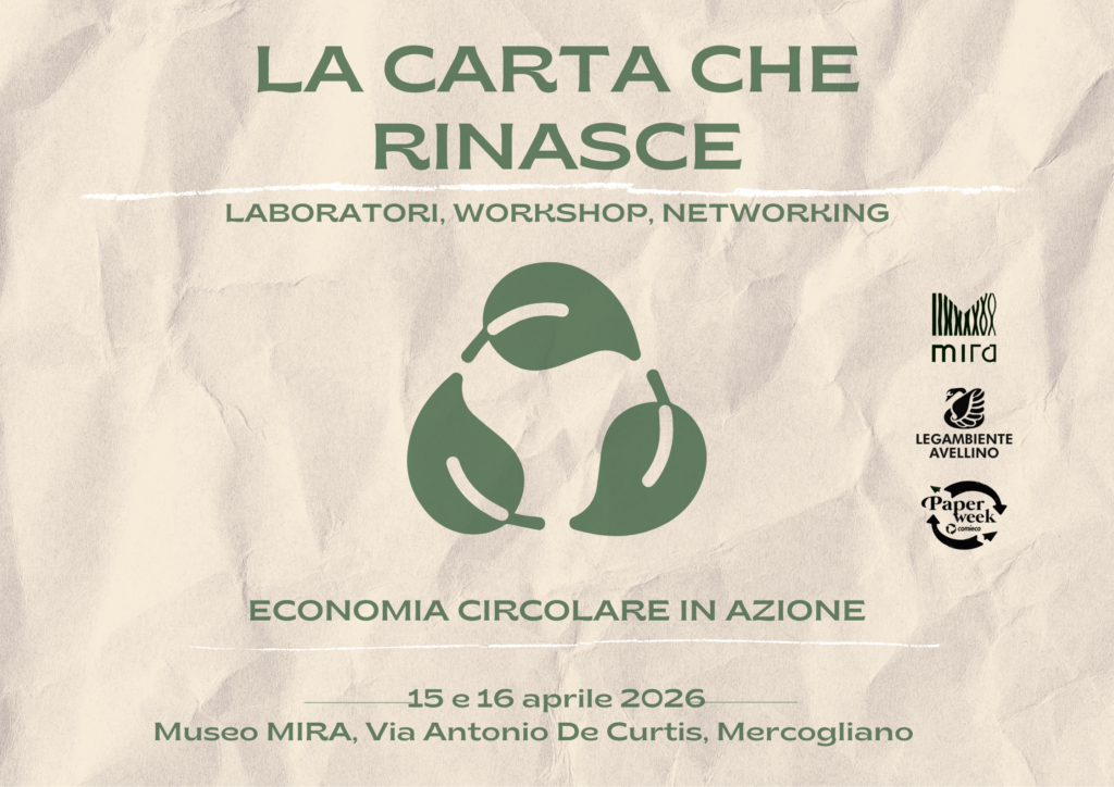 Promuovere il riciclo e sensibilizzare le nuove generazioni sui temi dell’economia circolare: è questo l’obiettivo di “La carta che rinasce”, iniziativa in programma il 15 e 16 aprile presso il Museo M.I.R.A. di Mercogliano. L’evento è organizzato da Legambiente Avellino – Alveare, in collaborazione con Comieco, nell’ambito della Paper Week.