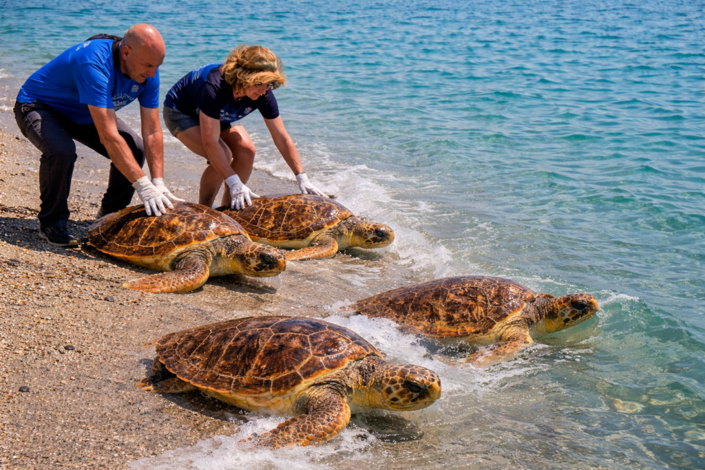 Gli esemplari – tre maschi e una femmina – erano stati curati presso la Stazione Zoologica Anton Dohrn e sono stati rilasciati grazie al Laboratorio Mobile del Centro Ricerche Grandi Vertebrati Marini. Tra loro Mek, salvata al largo della foce del Sele da un motopesca e restituita oggi al mare alla presenza del comandante che l’aveva soccorsa. Il nome è un omaggio al calciatore Scott McTominay.