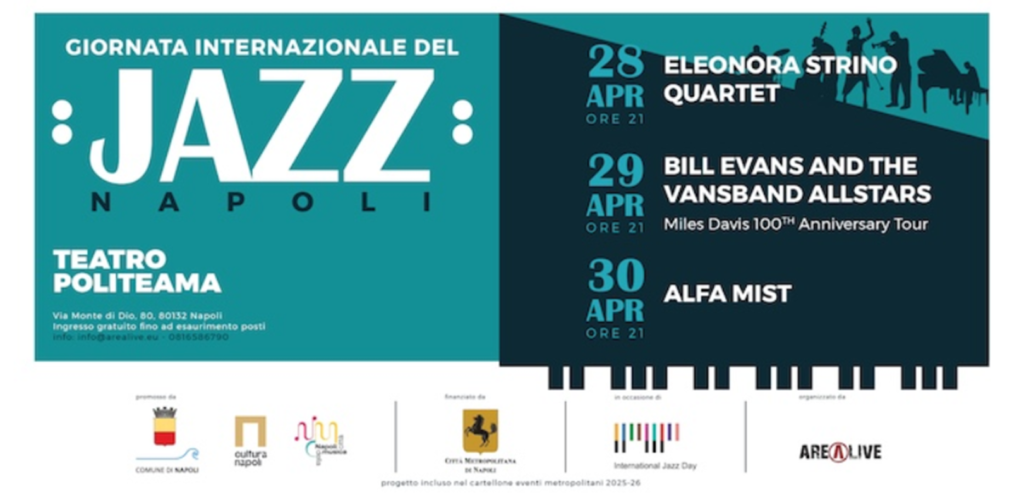 Dal 28 al 30 aprile Napoli ospita la terza edizione della Giornata Internazionale del Jazz, con tre concerti al Teatro Politeama nell’ambito del progetto “Napoli Città della Musica”, promosso dal Comune e organizzato da Arealive.