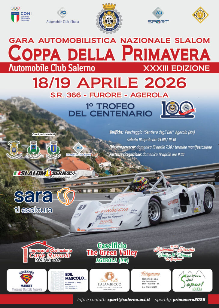 Tutte le informazioni sono disponibili su salerno.aci.it, sulla pagina Facebook Automobile Club Salerno ACI e sulla piattaforma Sportity “Primavera 2026”.