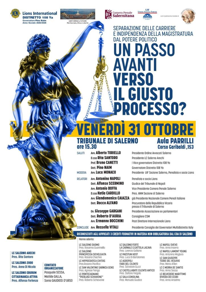 Il 31 ottobre 2025, alle ore 15.30, l’Aula Parrilli del Tribunale di Salerno in Corso Garibaldi, 153 sarà teatro di un appuntamento di grande rilievo per il mondo giuridico e per la cittadinanza: “Un Passo Avanti verso il giusto processo?”, un incontro pubblico dedicato alla riforma della magistratura e ai suoi riflessi sul sistema giudiziario italiano.